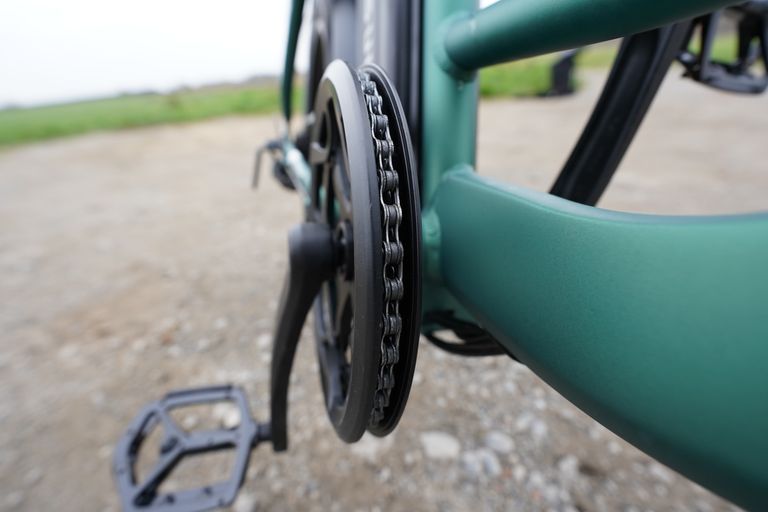 Was mir richtig gut gefällt, ist der Lack. Gerade das grün wirkt in Natura echt mega hochwertig und modern – zudem macht ENGWE Schluss mit den langweiligen Schwarz- und Grautönen. Bei unserem Testmodell gab es allerdings einen kleinen Lackfehler, direkt im unteren Bogen. Wenn ich die zahlreichen Bewertungen im Netz lese, scheinen wir damit ein kleiner Sonderfall zu sein – trotzdem müssen wir hier einen Punktabzug vornehmen.