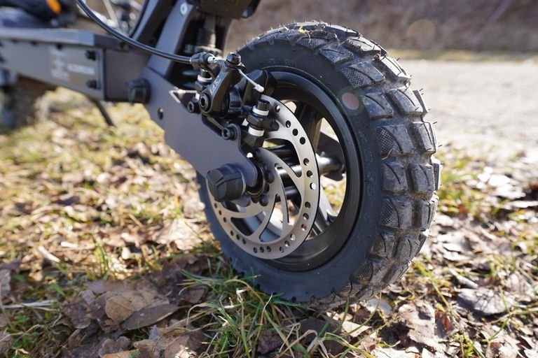 Die 10-Zoll-Tubeless-Reifen sind ein weiterer Pluspunkt. Schlauchloses Fahren bedeutet weniger Pannenrisiko und spürbar besseres Ansprechverhalten gegenüber Luftdruckverlusten — das zahlt sich im Alltag aus. Dafür hat sich das Modell im Test aber auch etwas komisch fahren lassen. Wir hatten aufgrund der Räder stets das Gefühl, dass wir auf Schienen fahren und schnelle Lenkbewegungen haben sich dann etwas schwammig angefühlt.